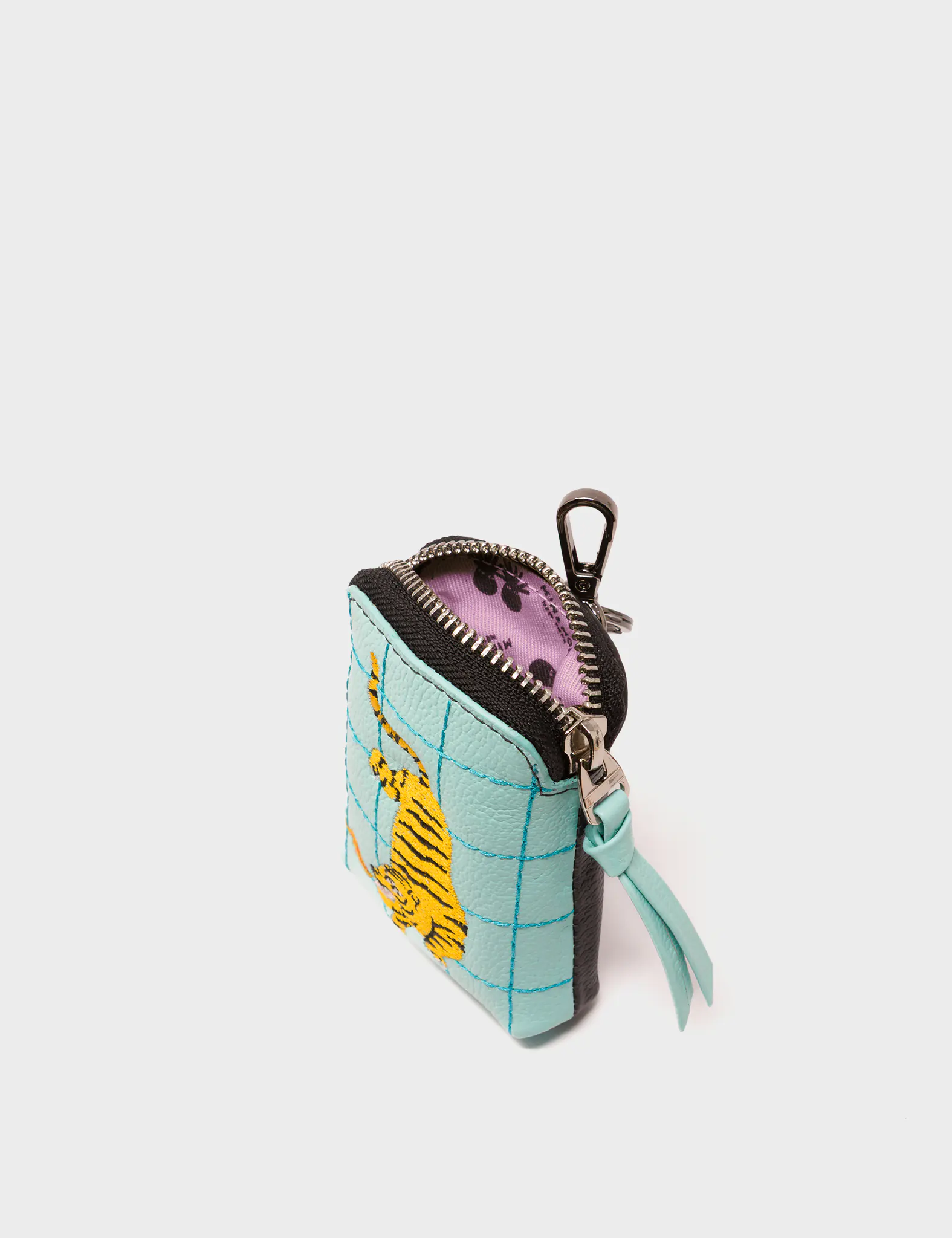 Florence Pouch Charm - Eggshell Blue Leather Keychain Retro Tiger Embroidery